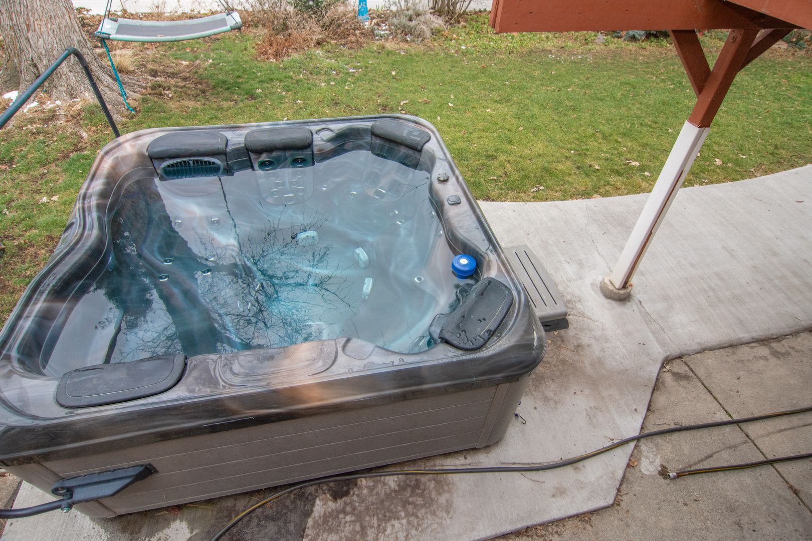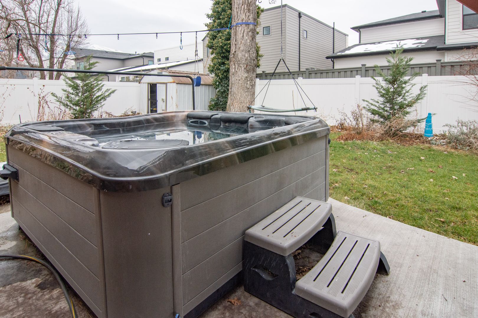 This house Has a great yard out back with a large spacious deck and a hot tub down below. A great place to live and with easy access to the freeway any commute is short.